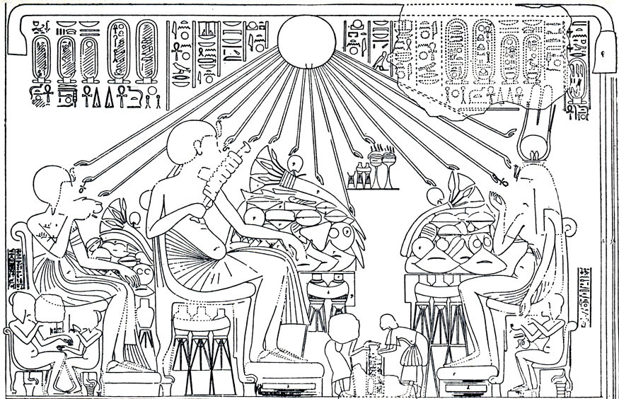 Возвращаясь после дальнего путешествия или перехода через пустыню, фараон знал, что его ждет приятный отдых во дворцах Пер-Рамсеса*, Мемфиса или Фив. А Эхнатону так нравился новый дворец в Ахетатоне, что он почти не покидал его. Нежный отец, верный муж, почтительный сын, он был счастлив только в кругу своей семьи, рядом с царицей и царевнами. Они сопровождают его и на прогулках. Они ходят вместе с ним в храм. Они присутствуют при раздаче вознаграждений. Они помогают ему принимать иноземных послов. Они готовят для него напитки и лакомства. Царица сама берет кувшин и ситечко и наливает фараону горячее питье. А когда у фараона гостила царица-мать, это уж было полное счастье! Полуденный завтрак и обед тоже происходили в семейном кругу**.